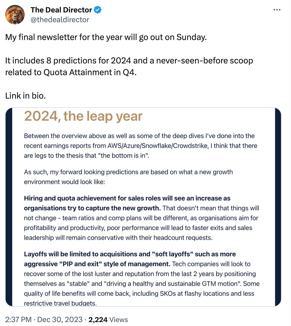 Last week I shared my professional 2024 goals with you. This week I thought it would be fitting to share what to expect for the GTM community in 2024.
