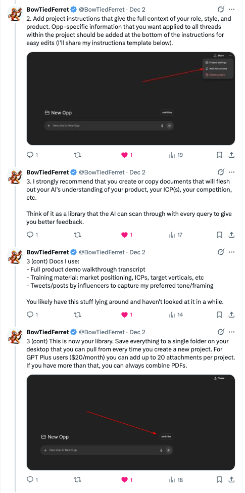 For each account, I upload relevant research and work inside a dedicated thread within the project folder.