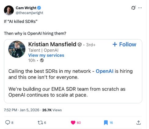 Open AI is hiring SDRs: