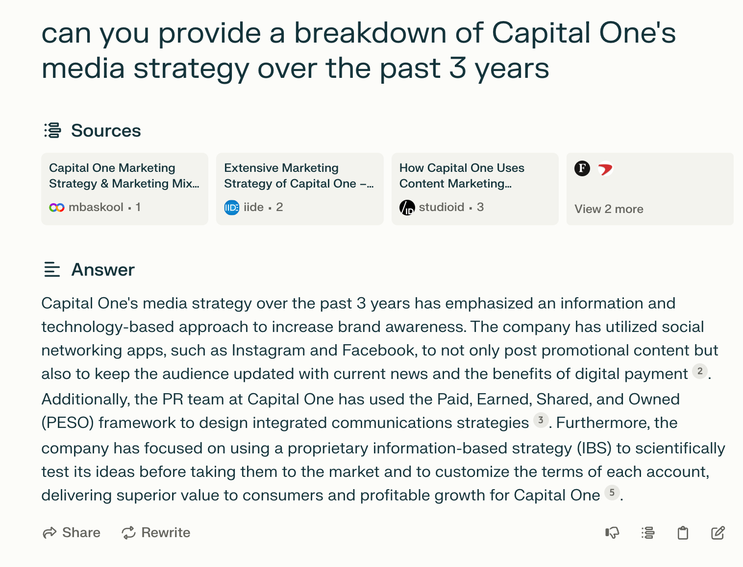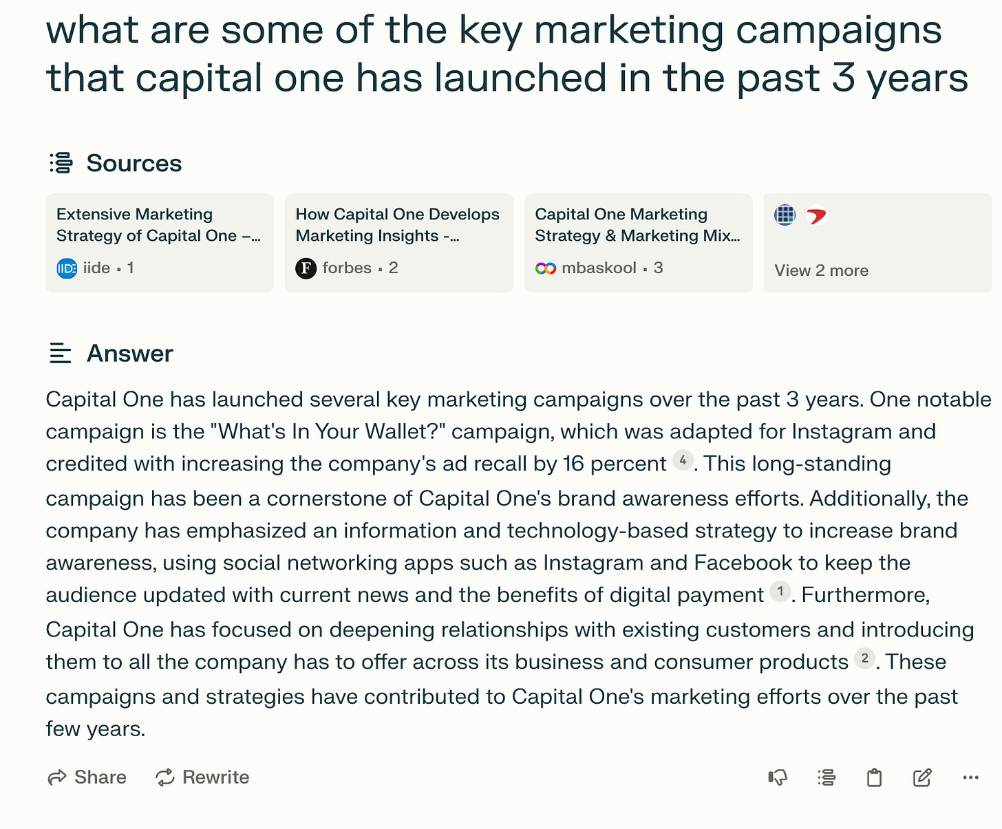 Cites sources that it’s pulling from when doing research