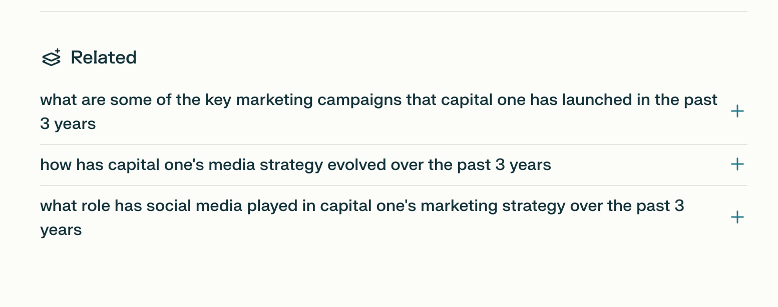 Provides you with variations or additional follow up questions based on your original query (it’s further refined using CoPilot)