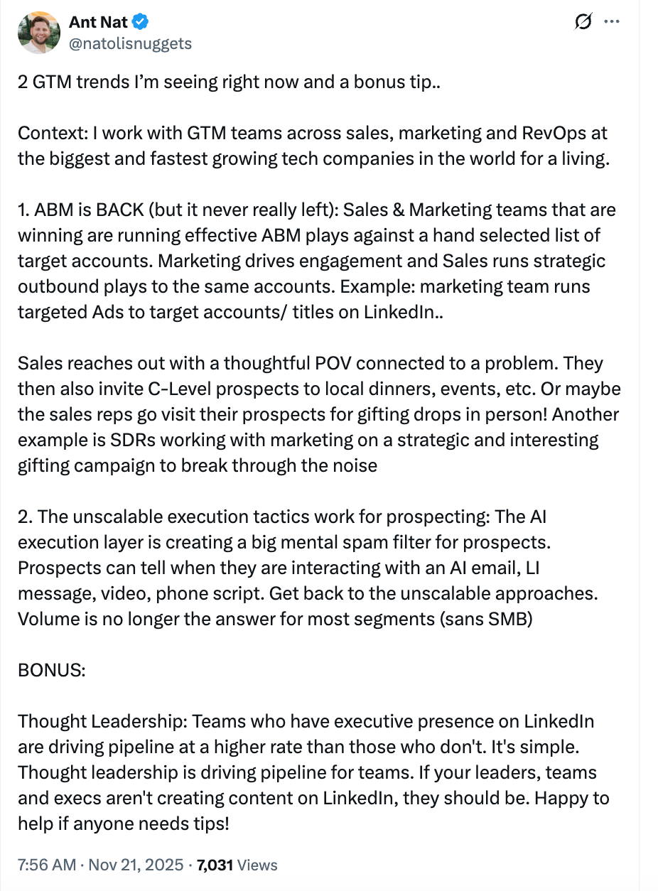 Today’s post curates the most relevant ideas, writing, and conversations from 2025 that shaped my thinking on GTM heading into 2026. If you’re new here, check out the Start Here page.
